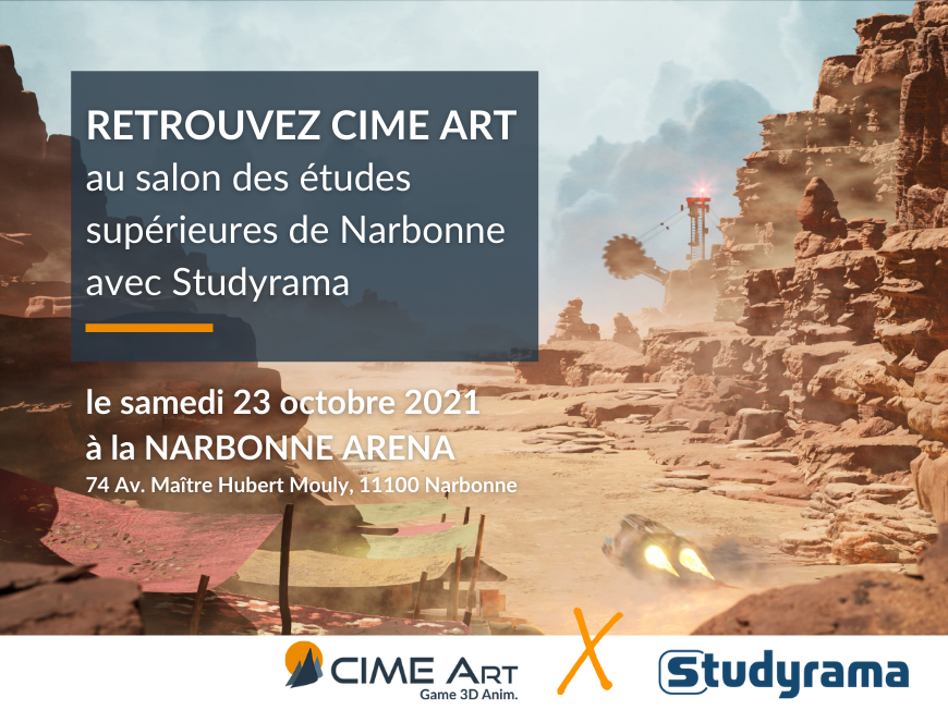 L’école sera présente à ce salon organisé par Studyrama, le samedi 23 octobre à la Narbonne Arena, pour vous rencontrer et répondre à vos questions ! C’est le moment idéal pour vous qui cherchez une école de jeux vidéo et d’animation 3D : n’hésitez pas à passer à notre stand ! Nous répondrons à toutes vos questions concernant le diplôme, les formations, et toutes autres questions concernant l’école !