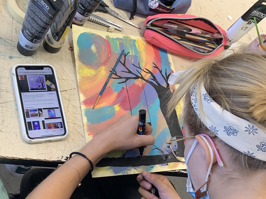 Les étudiants de la classe préparatoire en art appliqués ont travaillé sur la couleur. Ils ont créé 5 réalisations à base d’acrylique. Les consignes étaient les suivantes :