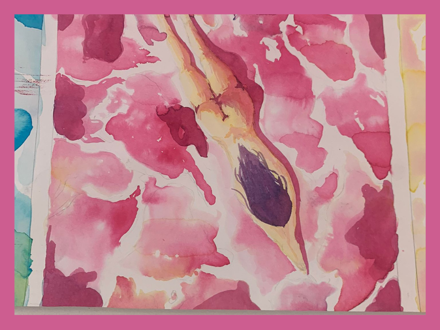 Sur le thème de la nageuse, les étudiants de la prépa ont découvert la pratique de l’encre de couleur.
