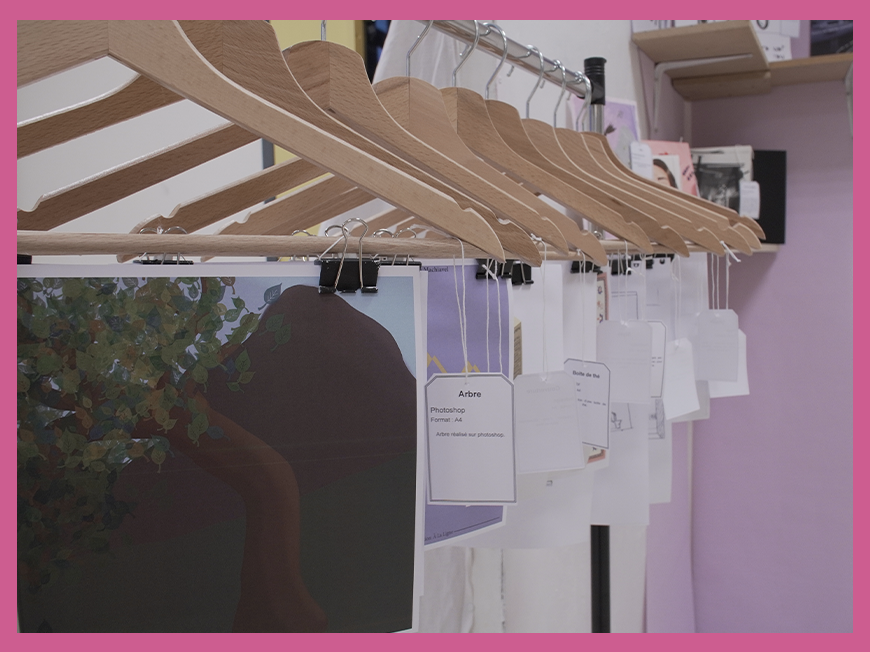 A partir des différents projets (typographie, croquis, design graphique, PAO…) et de leurs travaux personnels ils ont conçu une scénographie.