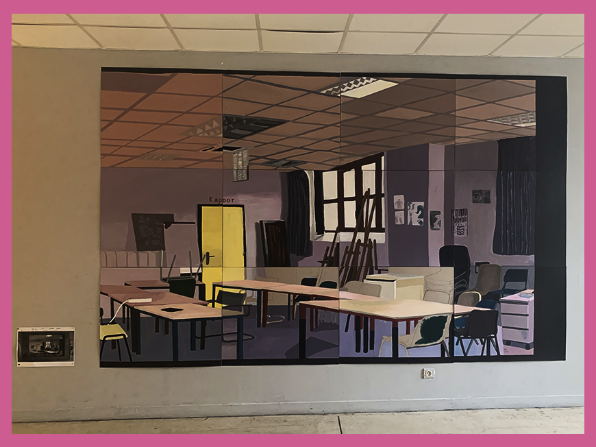 A partir d’une photo les étudiant de la classe préparatoire ont réalisé un trompe-l’œil. Chaque étudiant à dessiné une partie de la photo, puis ils ont mis en commun leurs dessins pour réaliser un trompe-l’œil.