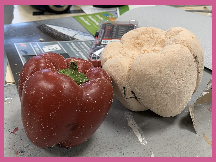 Les étudiants de la classe préparatoire de Grenoble ont participé à un workshop d’une semaine sur la sculpture. A partir d’un bloc de polyester ils ont dû reproduire un poivron. Une fois le poivron sculpté ils l’ont peint. Ils ont intégré le poivron dans un espace qu’ils ont eu même créer afin de raconter l’histoire d’un alchimiste.