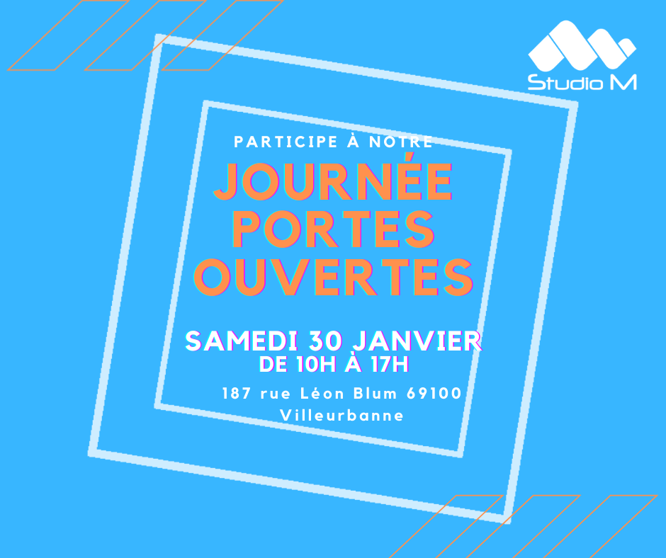 Alors inscris-toi et participe à nos Journées Portes Ouvertes le Samedi 30 janvier de 10h à 17h à l’École Studio M Lyon au 187 rue Léon Blum - 69100 Villeurbanne.