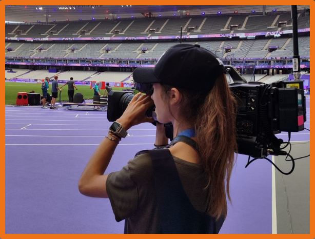 Au début, Lisa avait quelques appréhensions quant à la complexité de sa mission, mais grâce au soutien de Will, un cadreur expérimenté, elle a rapidement pris confiance en ses capacités : « Au départ, je craignais de ne pas être à la hauteur de ce poste, mais Will, le deuxième cameraman expérimenté, m'a bien aidée et rassurée. Il m'a également apporté son aide pour comprendre les termes (anglais) employés par Simon, le responsable en régie, qui donne toutes les indications de ce qu'il faut filmer. J'adore les prises de vue de la foule en liesse devant les exploits des athlètes. Il y a tellement d'émotions qui en ressort ! Ce stage m'a beaucoup appris en termes techniques, mais m'a aussi permis de voir tout l'envers du décor d'un événement aussi grandiose que l'athlétisme aux JO. »